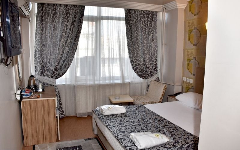 Artılar: Merkezî adres; otel içi restoran ve bar; etkinlik/düğün imkânı; ücretsiz Wi-Fi ve 24 saat resepsiyon.
